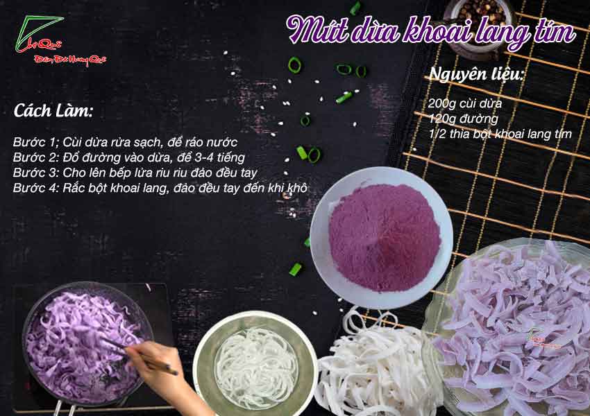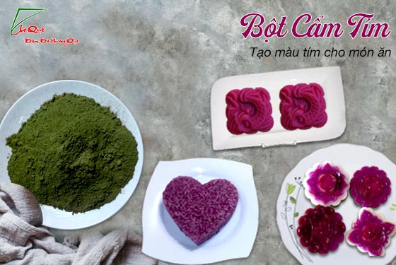 c. Màu tím: bột lá cẩm tím, bột khoai lang tím lên màu rất nhanh và màu lên đẹp.