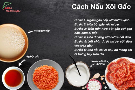 – Cách 2: Trộn trực tiếp bột gấc cùng nguyên liệu. Cách này chỉ sử dụng dùng để nấu xôi.